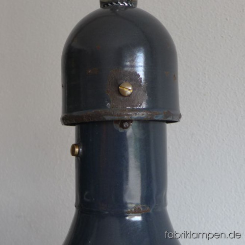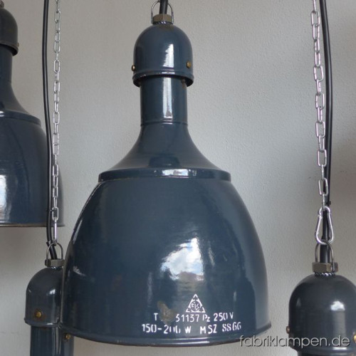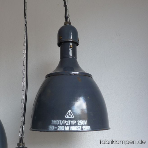 These old factory lamps will be shipped with 2 m cable and suspension eye (textile cable, chain or steel tube suspension is possible for an additional charge).