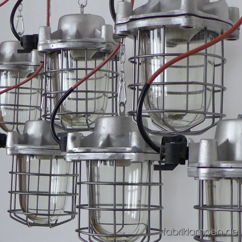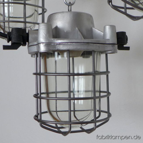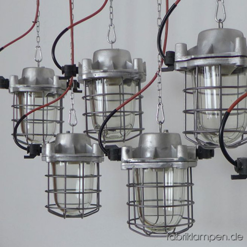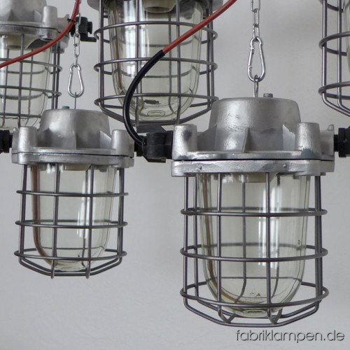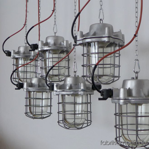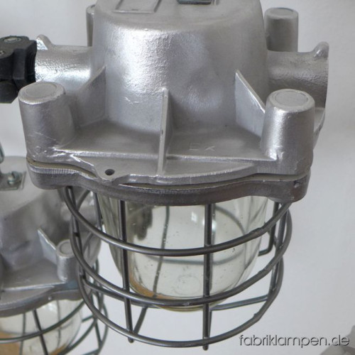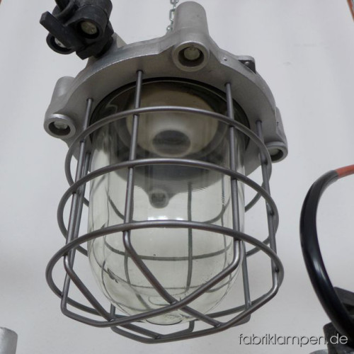 Old bunker lamp. Material: aluminium casing, safety glass and grid. Also in original condition in stock.