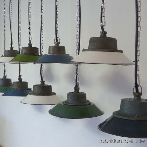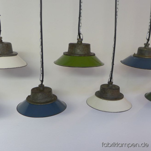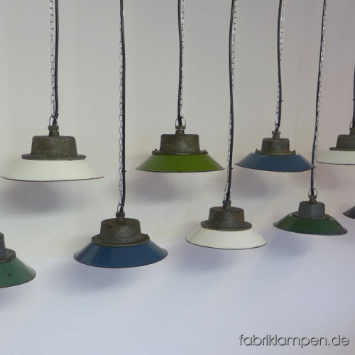 Old industrial lamps with enamel shade in various colours. Very nice and playful collection.