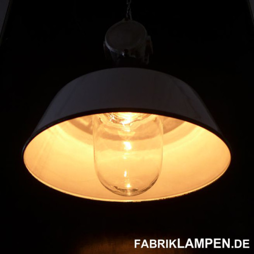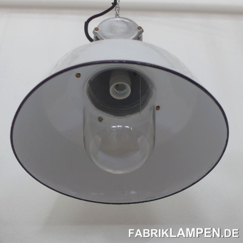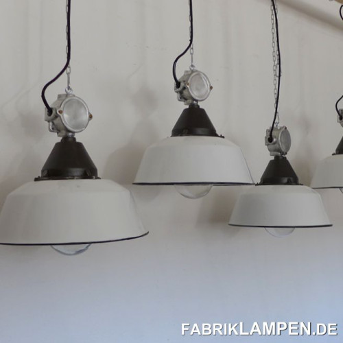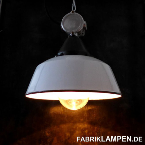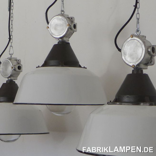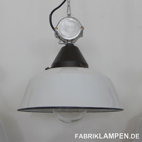 White factory lamp old enamel, with cast iron top and aluminum distribution box, with safety glass.