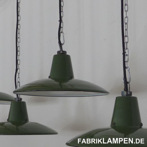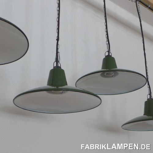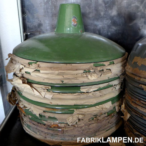 Grüne Fabriklampen Emaille alt „ULLMANNIA”