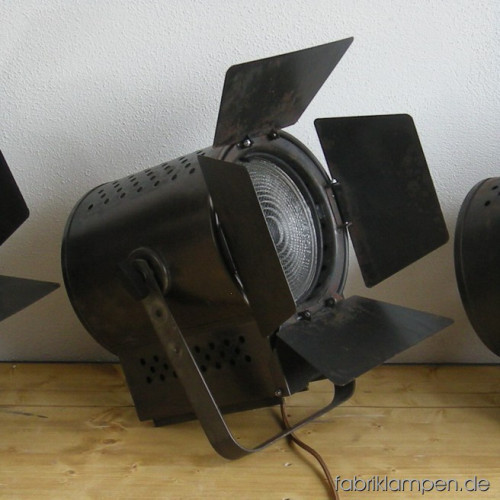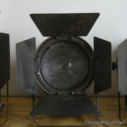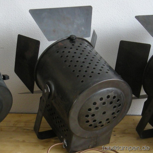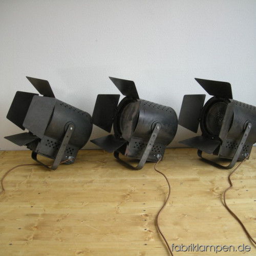 3 p. older headlights with traces of use and age (light indentations, some rost, chips, scratches – please see the pictures). The lamps are cleaned and tested, they can be used with E27 bulbs. Diameter ca. 23 cm (9,1 inches).