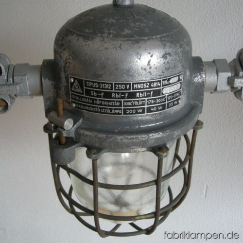 Aufhängung: Die Bunkerlampen werden mit Aufhängeöse, ohne Aufhängung geliefert. Bitte sorgen Sie für die geeignete Aufhängung der Lampen – die Leuchten mit Kabel zu heben oder aufzuhängen ist unzulässig. Gegen Aufpreis kann eine Ketten-Aufhängung – verzinkt, 2 Meter, oben und unten mit Karabinern, ohne Baldachin – mitgeliefert werden.